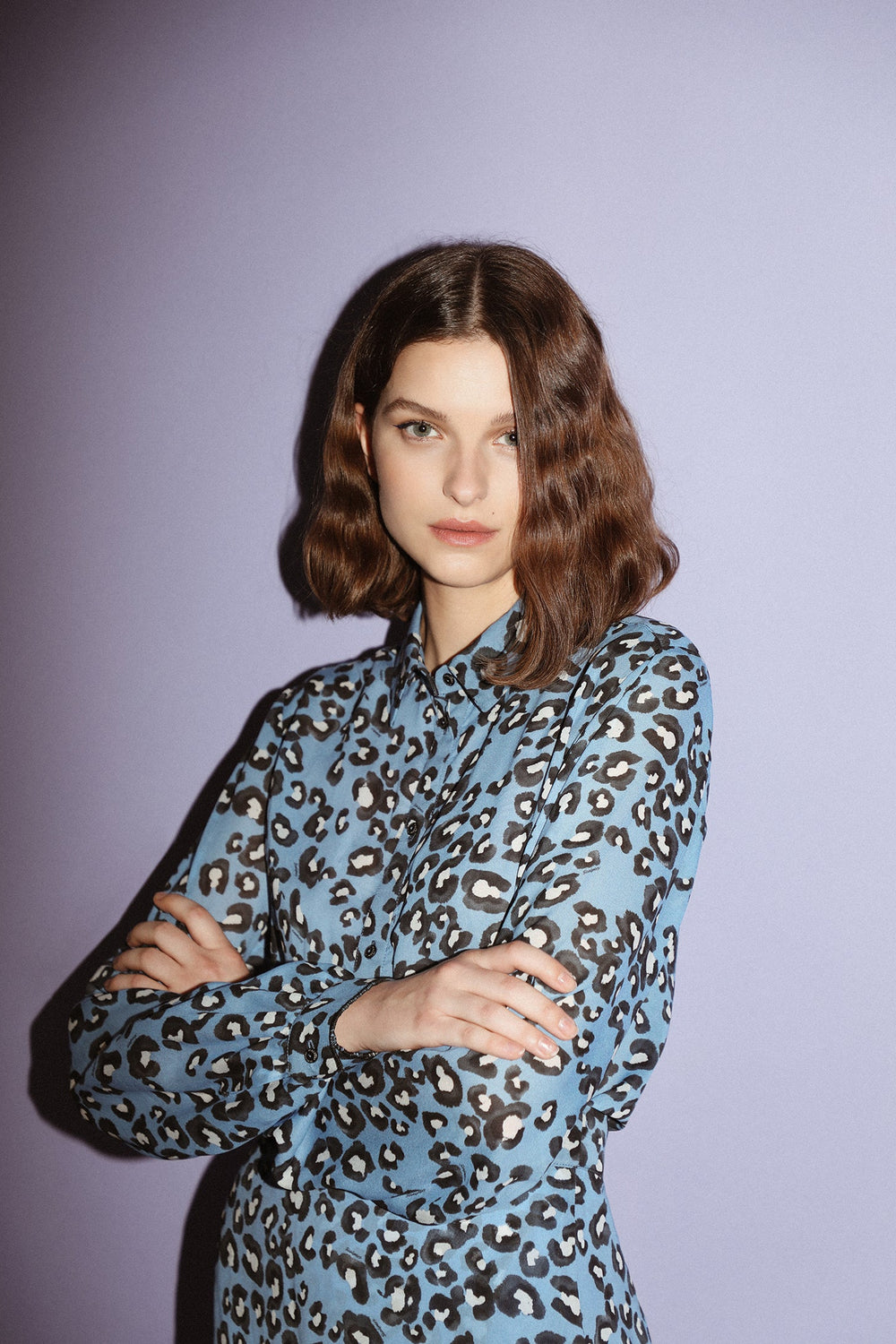 Camisa con estampado de leopardo. Corte Regular Fit, cuello clásico y cierre con botones ocultos por tapeta. Manga larga terminada en puño con botón.