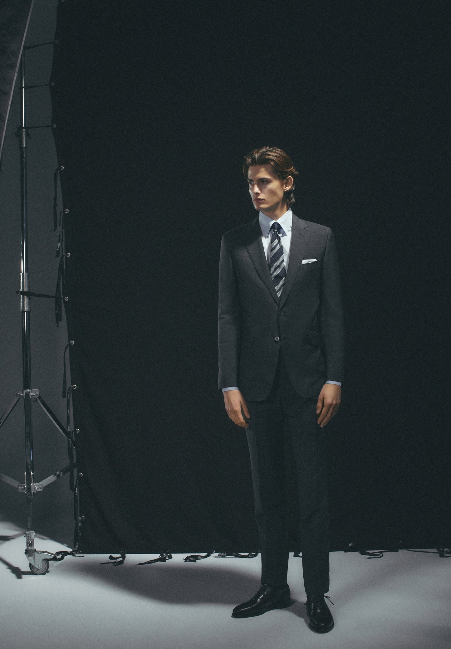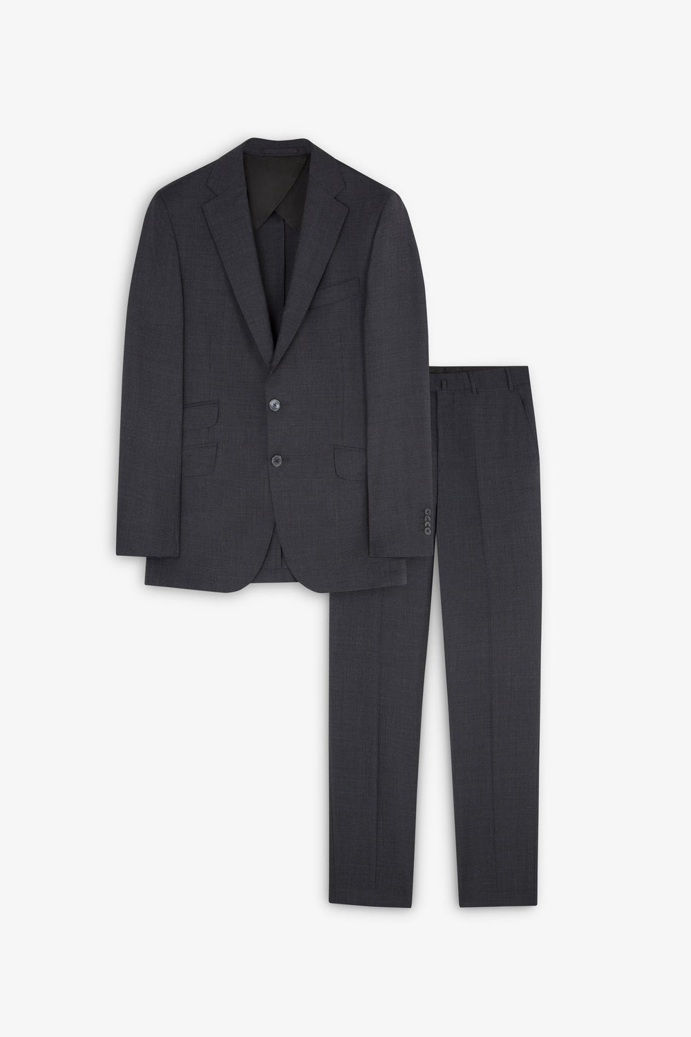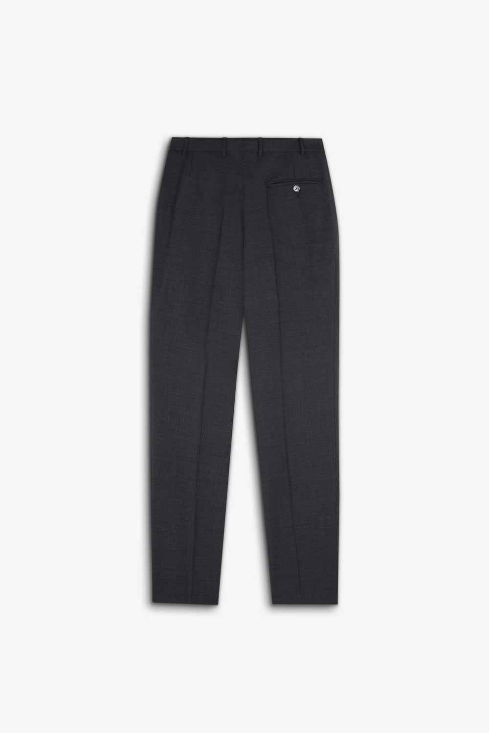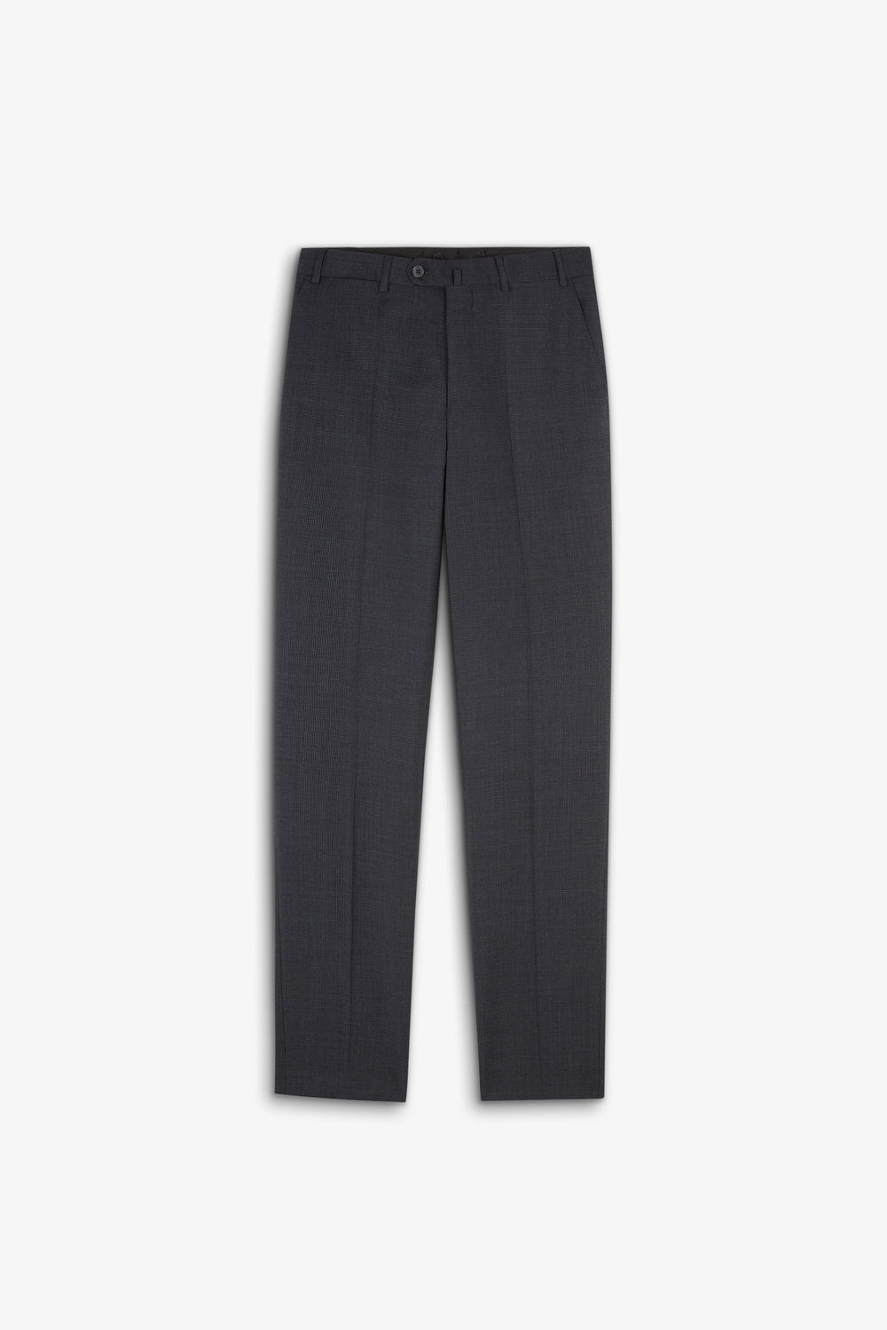 - Pantalón recto con cierre de botón prologando en cintura y cremallera. Botón interior para tirantes. Bolsillos laterales
