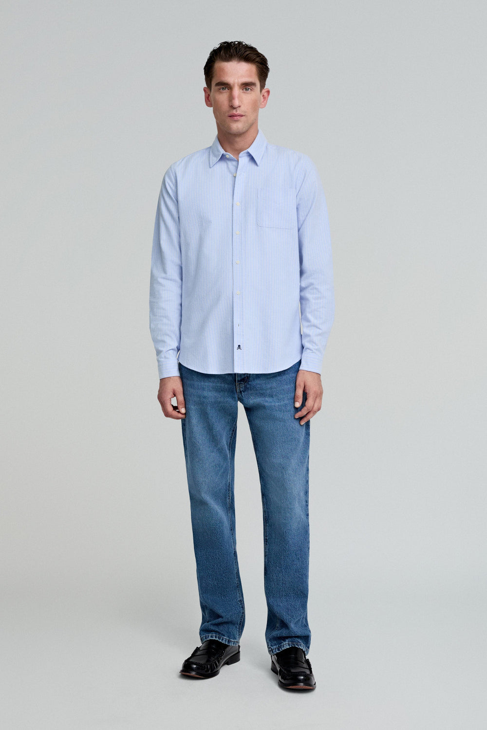 Camisa de rayas confeccionada en 100% algodón. Regular fit, cuello clásico y cierre con botones. Manga larga terminada en puño con botones y bolsillo en el pecho. Calavera a contraste en tapeta.