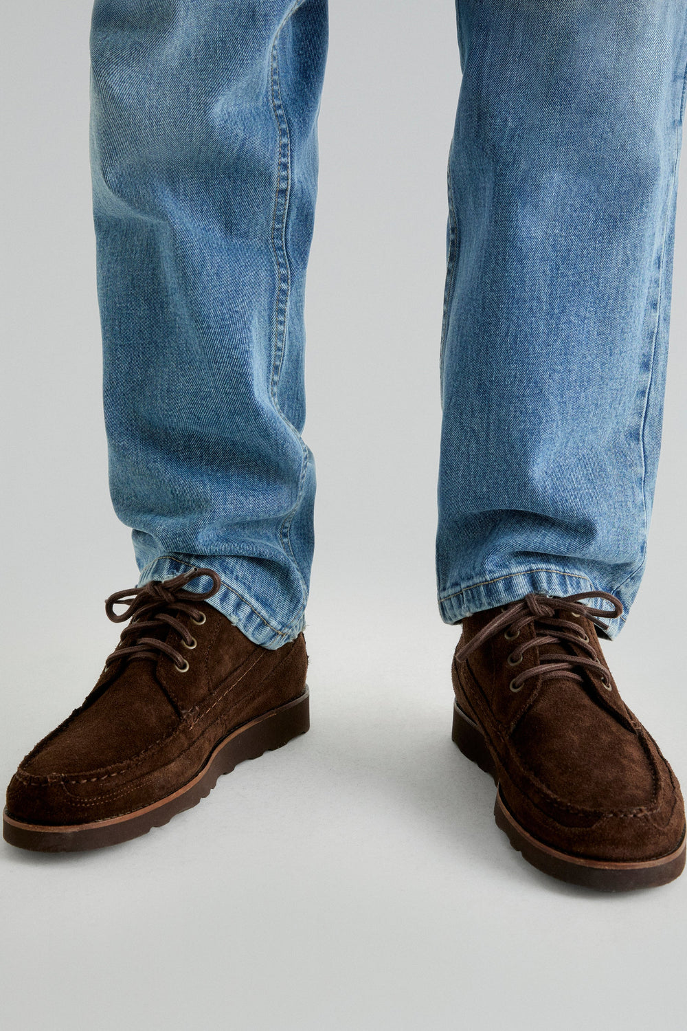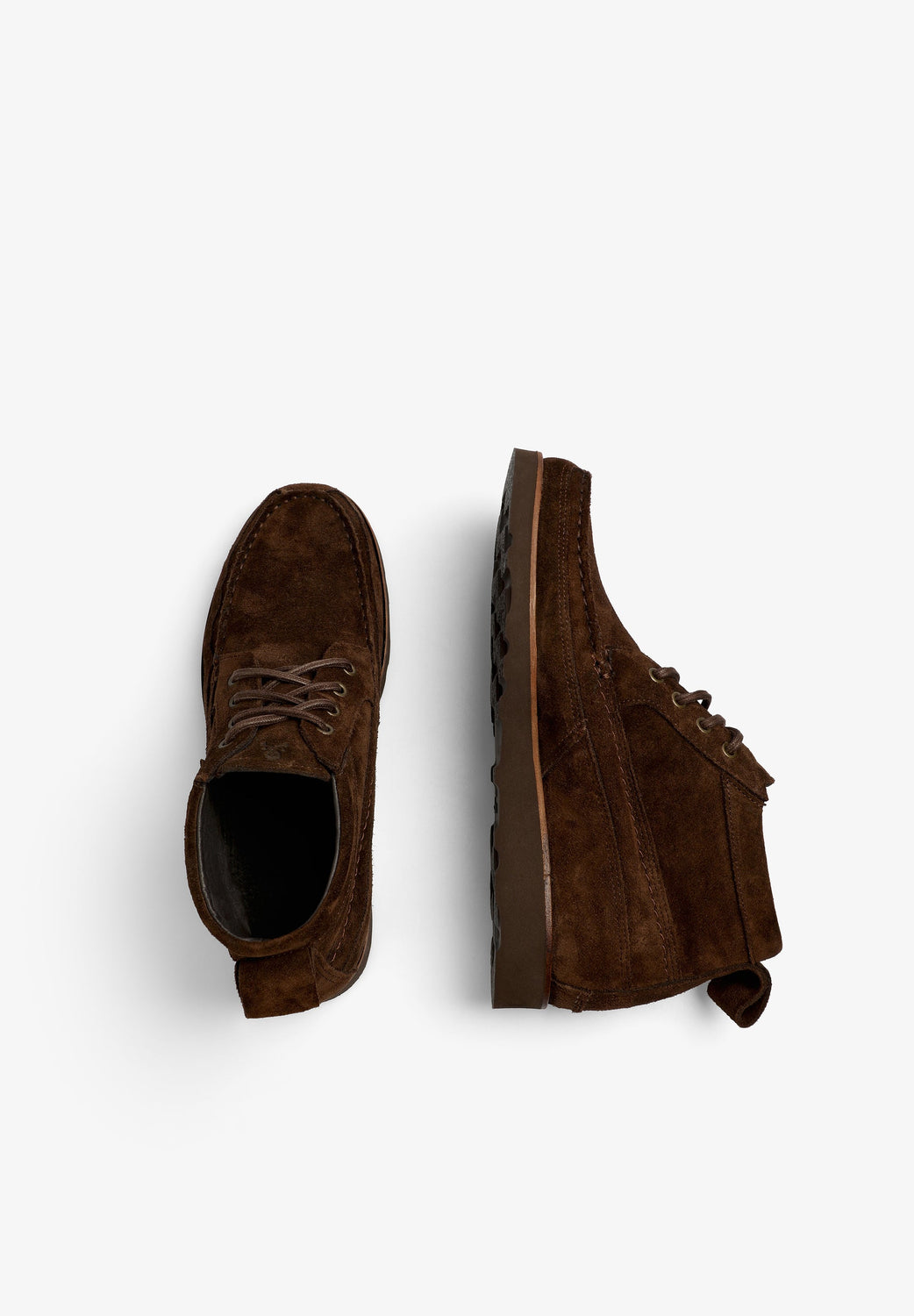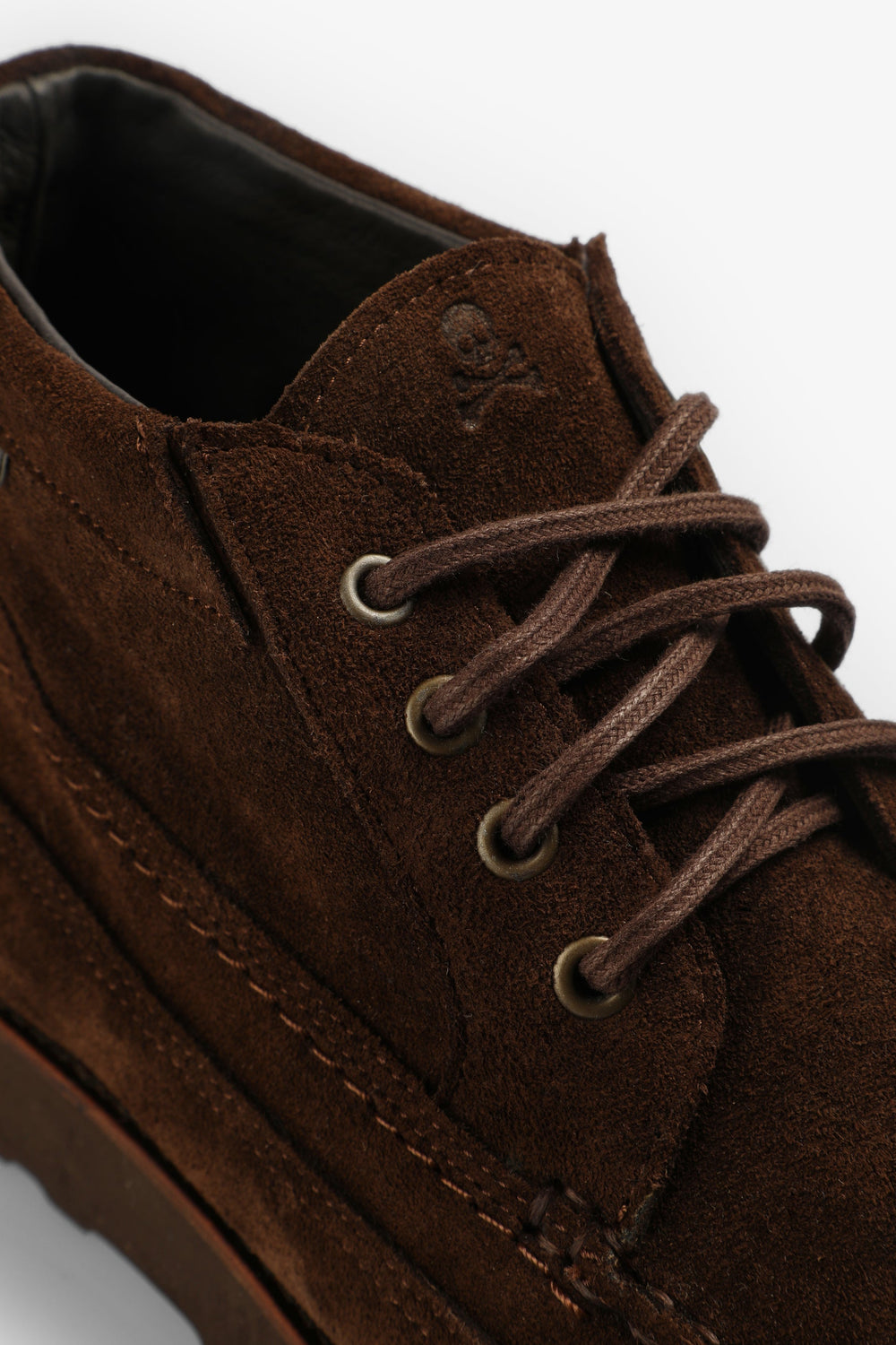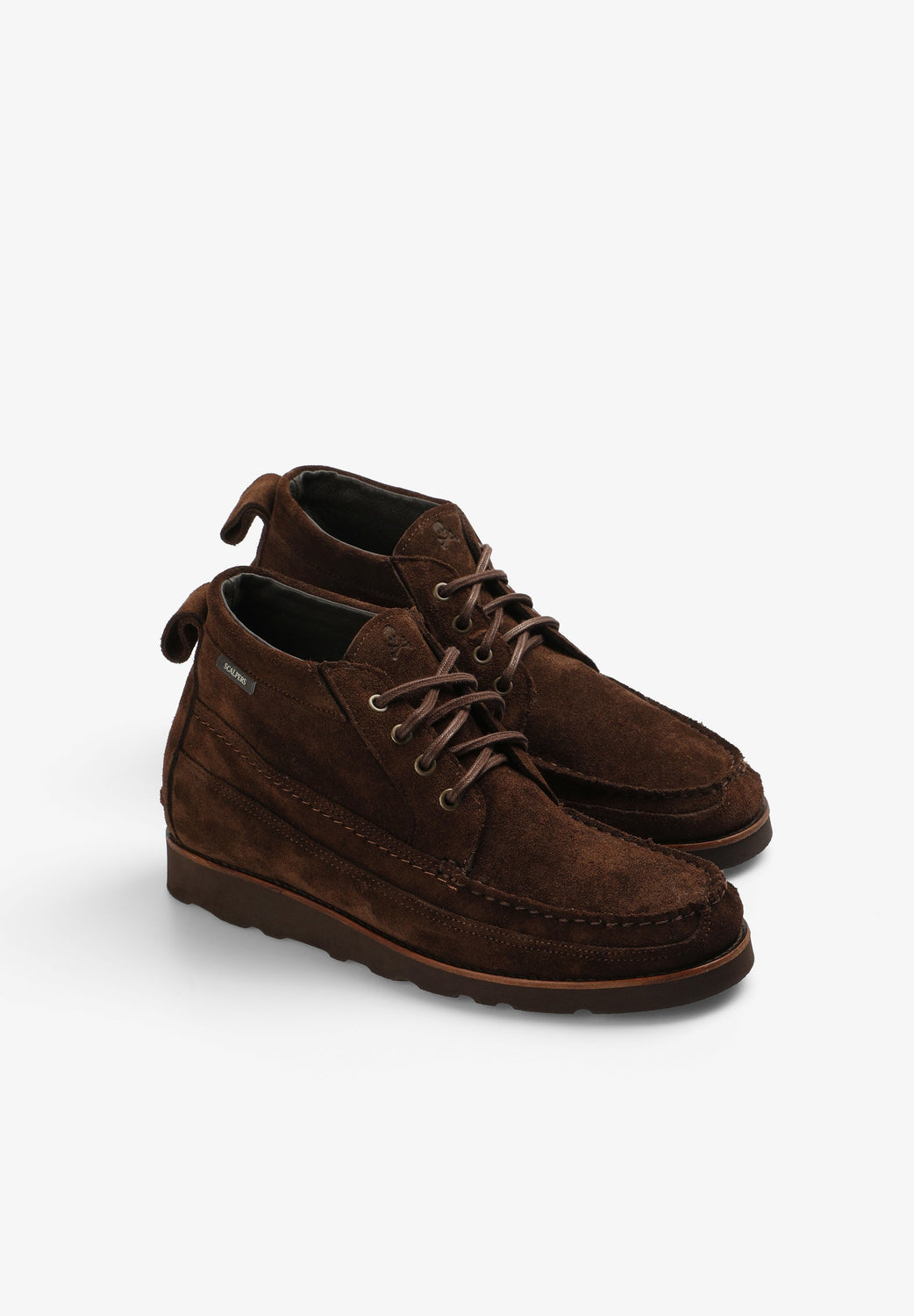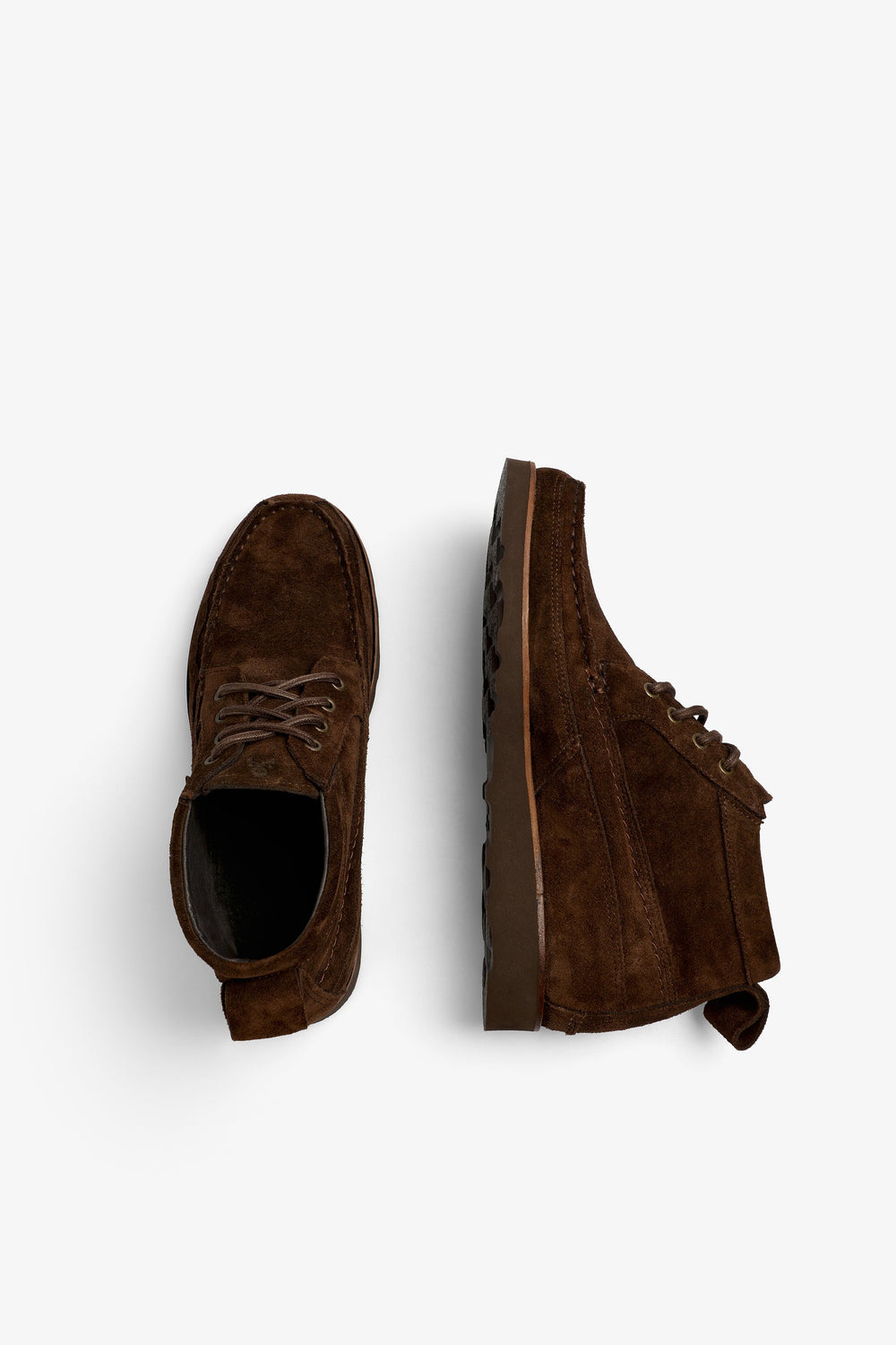 Botas confeccionadas en 100% piel terminadas en ante. Cierre con cordones a tono, suela Vibram dentada y tirador trasero. Detalle de etiqueta con logo.