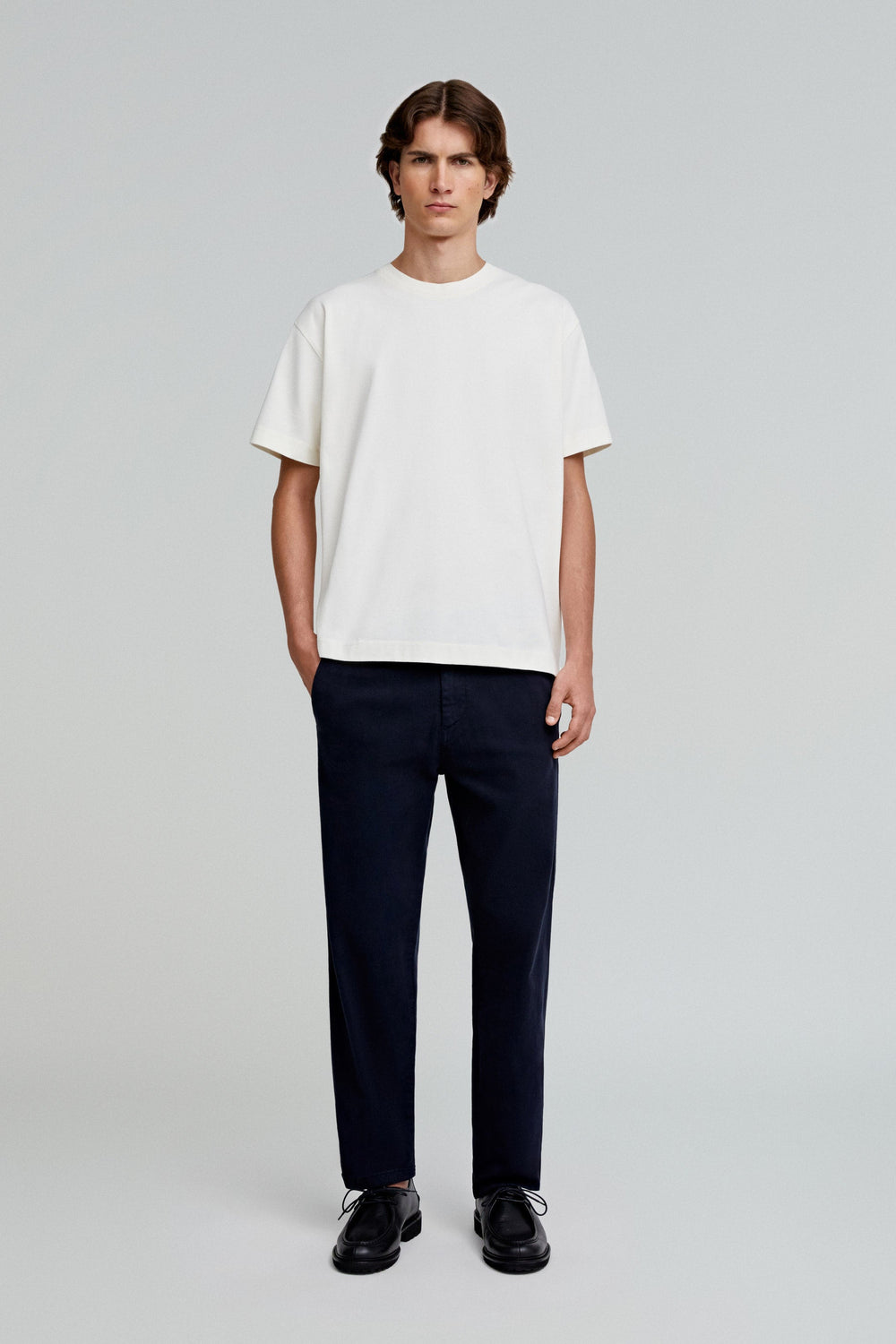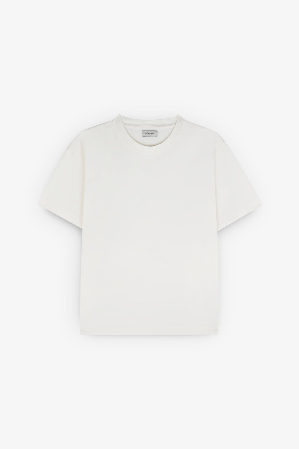 Camiseta confeccionada en 100% algodón BCI heavy. Boxy fit, cuello redondo y manga corta.