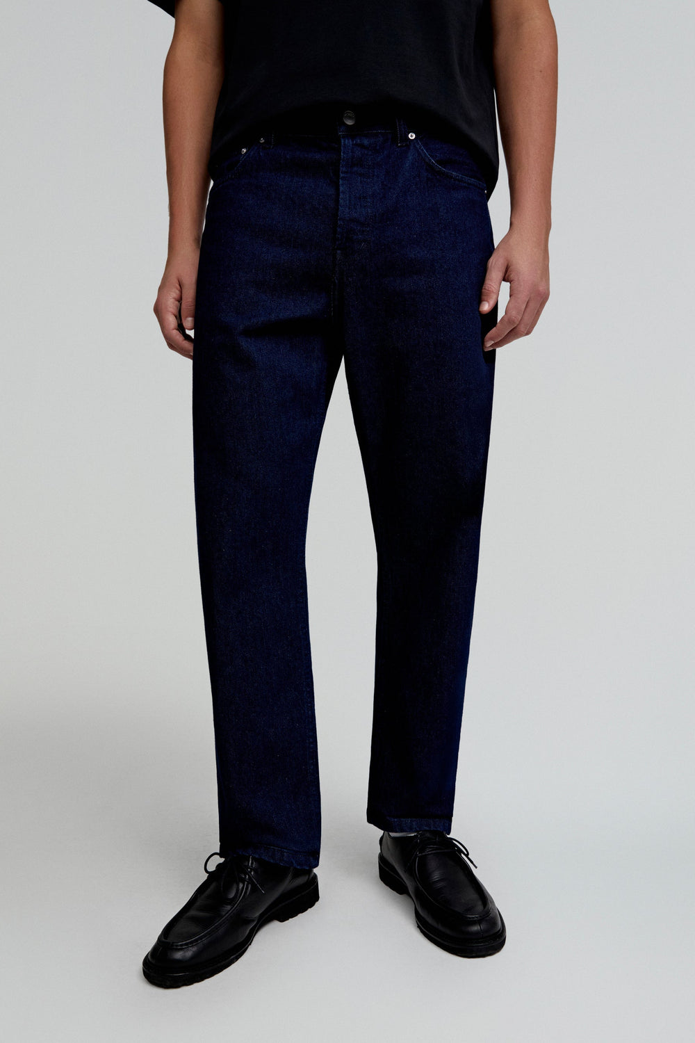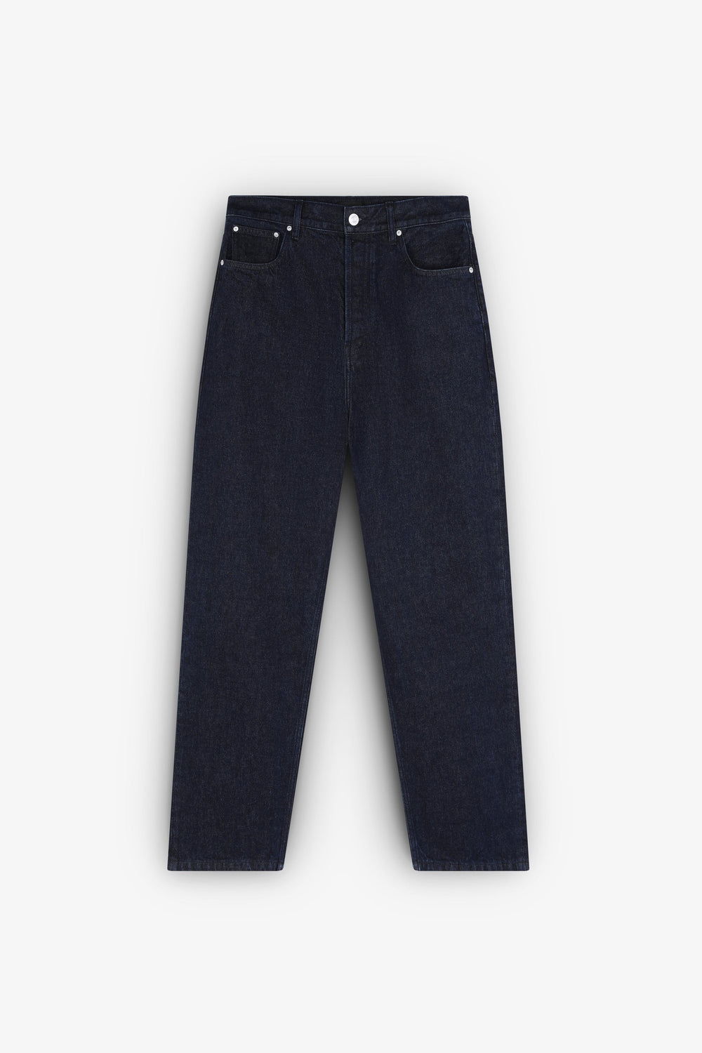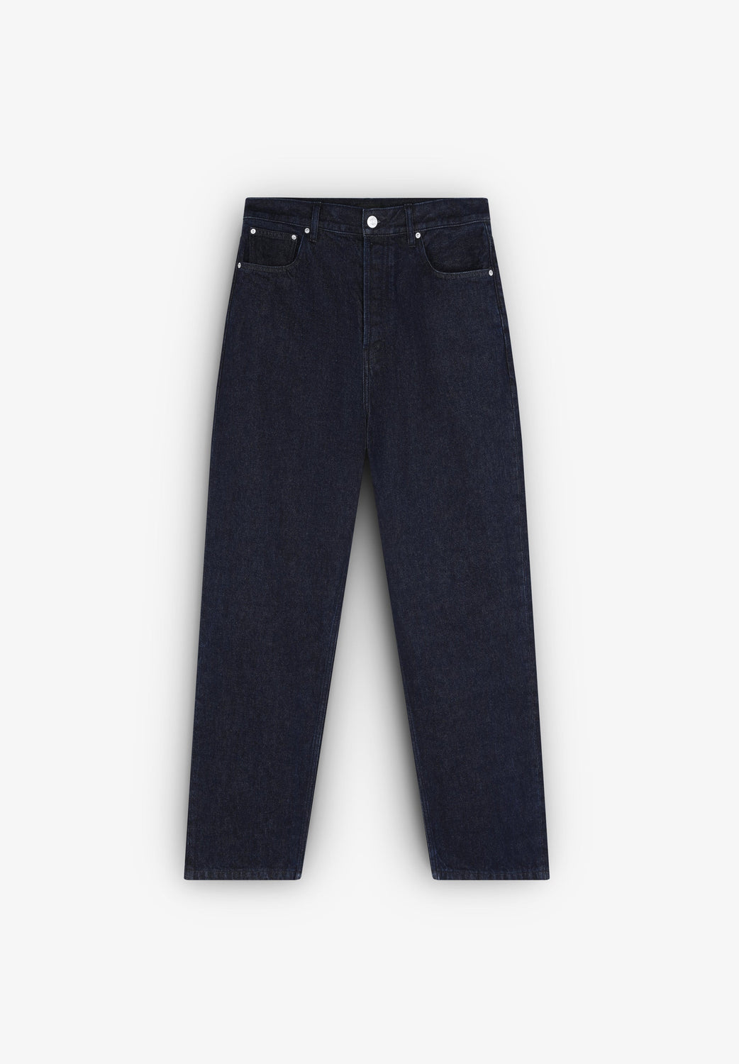 Jeans confeccionados en 100% algodón BCI. Corte recto, cierre con botón y cremallera. Bolsillos frontales y traseros y trabillas en cintura.