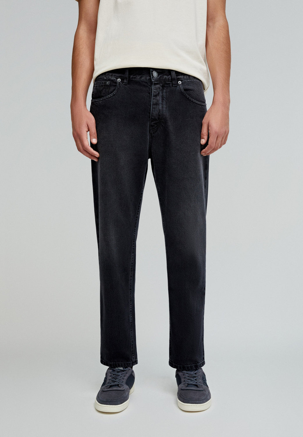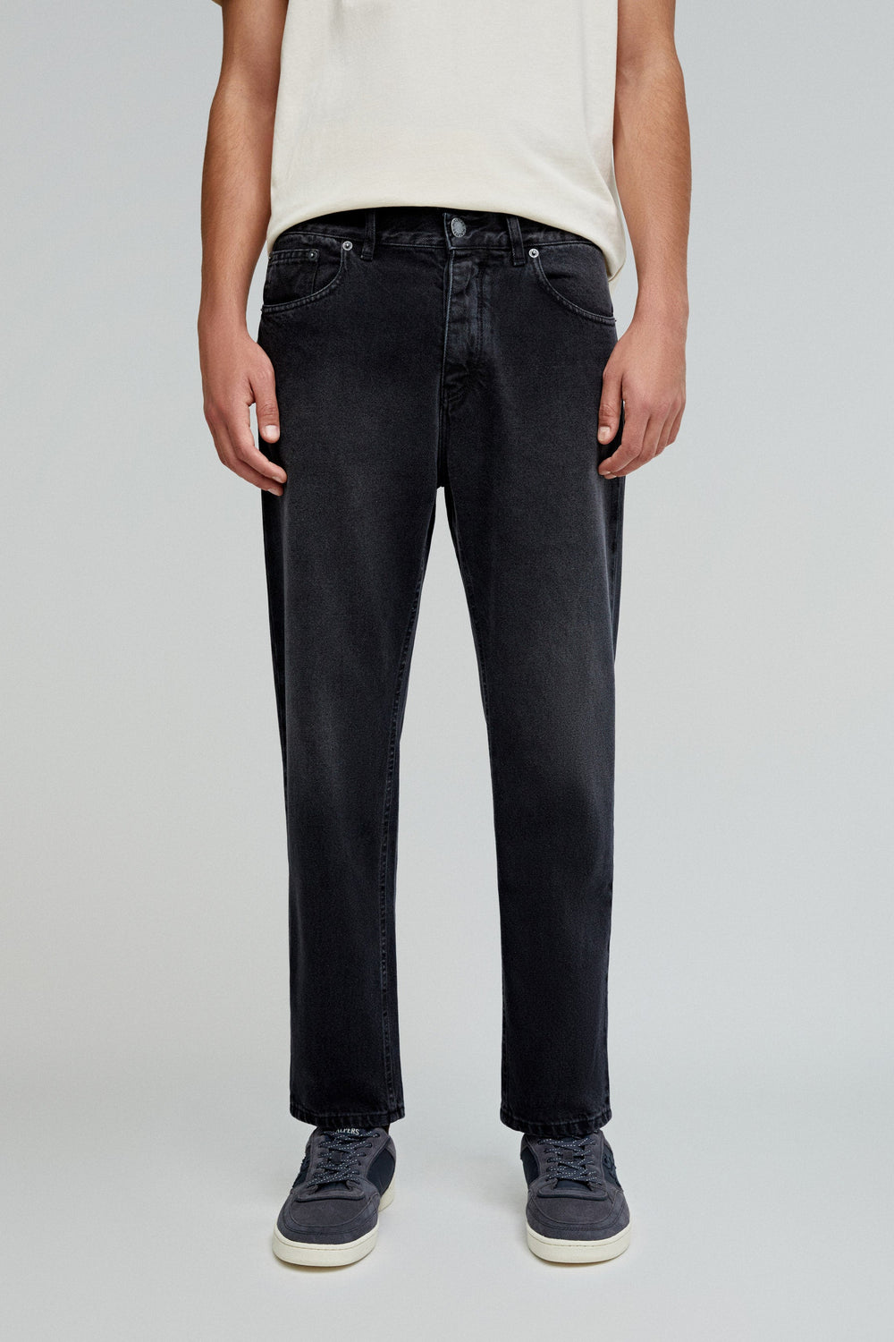 Jeans confeccionados en tejido ligeramente elástico. Corte cropped, cierre con botón y cremallera y bolsillos laterales y traseros. Trabillas en cintura.